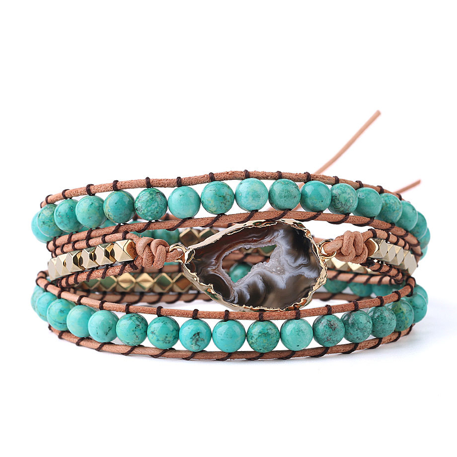 Natural Turquoise & Agate Beaded Bracelet for Women